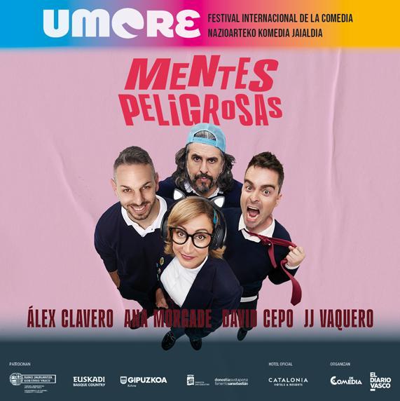 Nuevo show, nuevos monólogos, nuevos gags… Mentes Peligrosas vuelve para demostrar que es la mejor fiesta de la risa posible. Álex Clavero, David Cepo, JJ Vaquero y Ana Morgade llegan al Auditorio Kursaal para bailar, cenar, beber… Y, sobre todo, reírnos como nunca. Mentes brillantes, talentosas y peligrosas que se reúnen una vez más para crear una experiencia única.Reserva tu aparcamiento durante el festival a un precio super especial con Telpark. ¡Resérvalo en la APP!