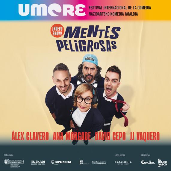 Nuevo show, nuevos monólogos, nuevos gags… Mentes Peligrosas vuelve para demostrar que es la mejor fiesta de la risa posible. Álex Clavero, David Cepo, JJ Vaquero y Ana Morgade llegan al Auditorio Kursaal para bailar, cenar, beber… Y, sobre todo, reírnos como nunca. Mentes brillantes, talentosas y peligrosas que se reúnen una vez más para crear una experiencia única. -