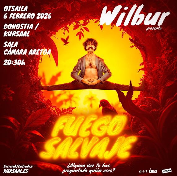 “Fuego Salvaje”, más que un título, es una actitud. Desde una sensibilidad tan arriesgada como cualquier deporte extremo, Wilbur –actor madrileño conocido por sus vídeos virales en redes– nos presenta, a corazón abierto, una historia real y arrebatadora. Una invitación a mirarnos en el espejo de lo patético y a aceptar que no somos ni tan guapos, ni tan flacos, ni tan gordos, ni tan inteligentes, ni tan normales…Un viaje iniciático que trata sobre la reconquista del ser y del propio cuerpo, una lucha de titanes entre el personaje, Wilbur, y la persona, Víctor Ortiz de la Torre; un cara a cara entre un payaso de hombros caídos y «cuerpo escombro» que acepta profundamente ser quién es y un gimnasta de alta competición, guapo y ex millonario, que aún presume haber sido campeón de España durante la década de los 90. Todo lo que uno pueda imaginar que va a suceder en “Fuego Salvaje”, no va a suceder: este show rompe con todas las expectativas posibles. No es un espectáculo peligroso, sino brutalmente revelador, cruel y amoroso.